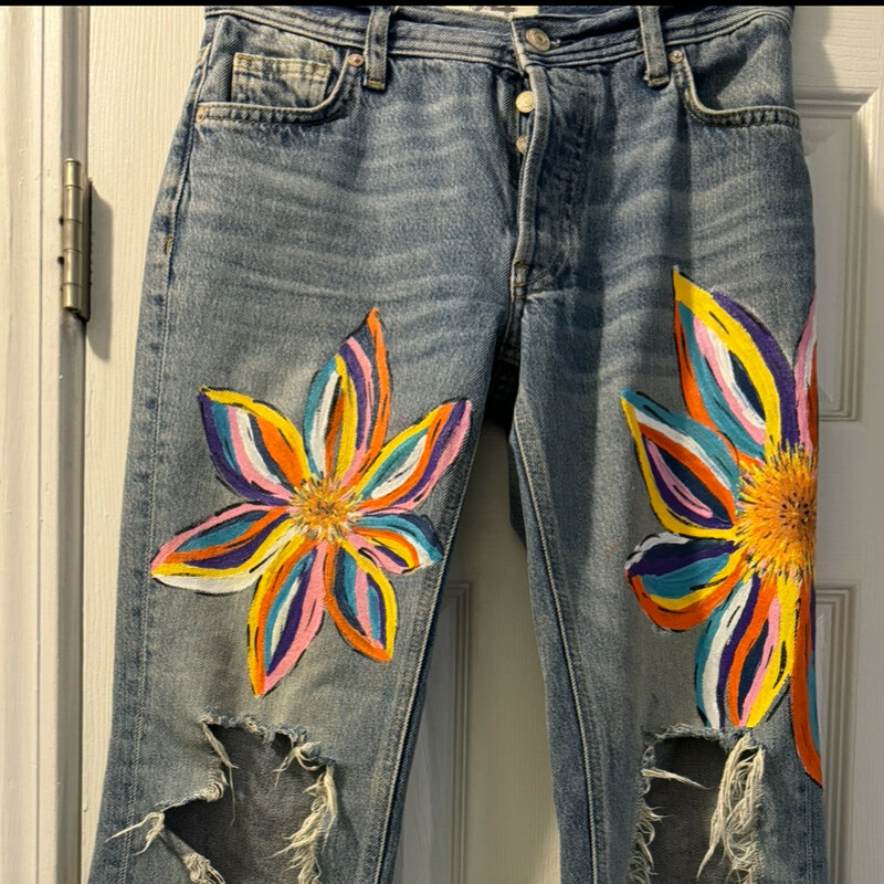 She began to paint on clothing, first as personal gifts to friends and family. She quickly realized that her unique style had an audience that she hadn’t anticipated and she took the leap to expand her work.