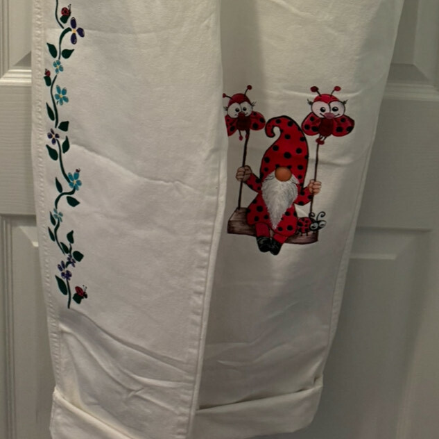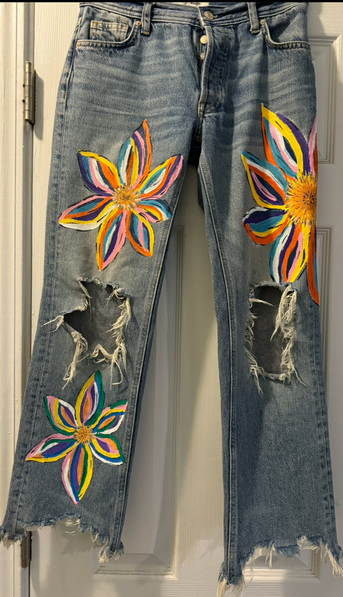 She began to paint on clothing, first as personal gifts to friends and family. She quickly realized that her unique style had an audience that she hadn’t anticipated and she took the leap to expand her work.